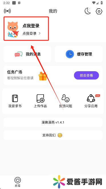 漫趣漫画不氪金版攻略-如何注册1、打开软件点击底部的【我的】