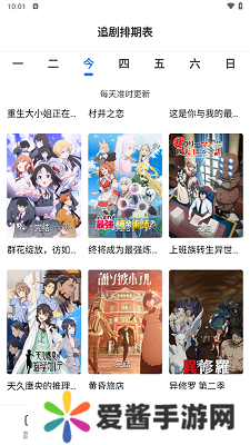 3、在排期表界面下,我们能够看到每一天的动漫更新计划。