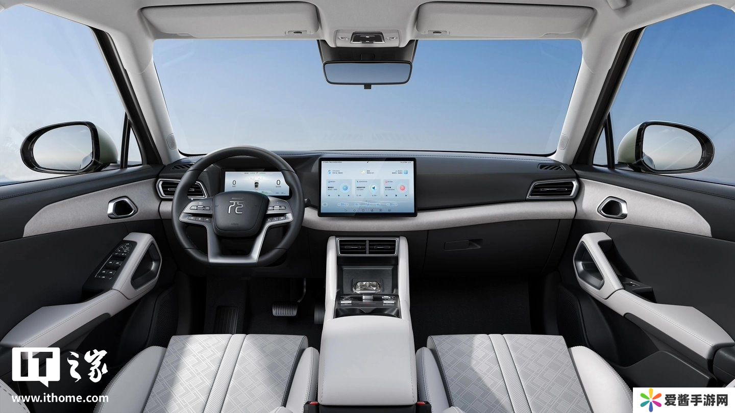 在内饰方面,元 UP 301KM 领航型的造型线条硬朗,层次感十足。中控台配备了 8.8 英寸仪表屏和 12.8 英寸中控屏,搭载了比亚迪 DiLink 车联系统,由 D100 芯片提供算力支持,具备四音区交互等功能。此外,车内还配备了手机无线充电等便利性功能。
