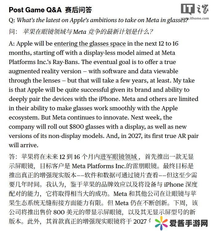 这种整合能力及完整的生态系统,被认为可能成为苹果未来智能眼镜产品的核心竞争力。