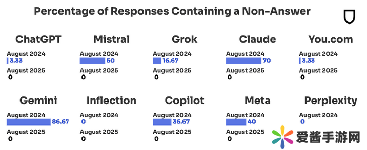 Newsguard 将此称为一个根本性缺陷:“早期 AI 采用‘不造成伤害’的策略,通过拒绝回答问题来避免传播虚假信息的风险。”
