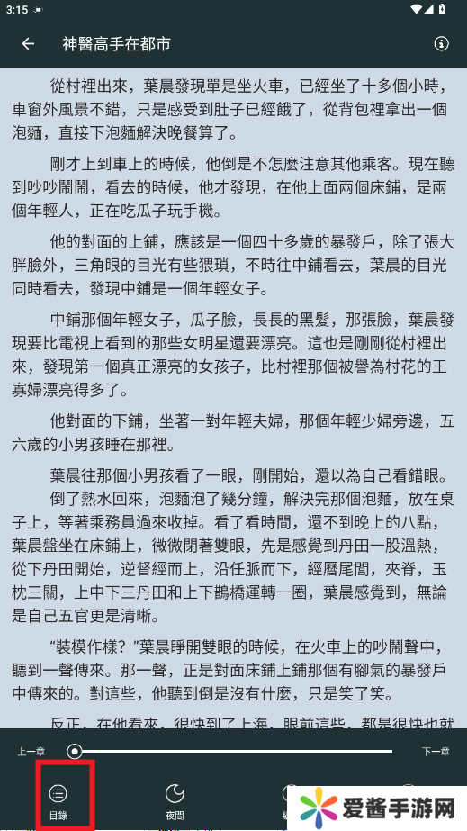 进入阅读界面,点击中间区域唤出菜单