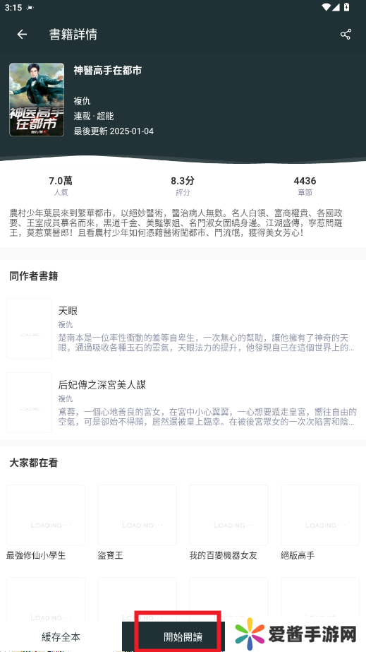 进入书籍详情界面,点击开始阅读