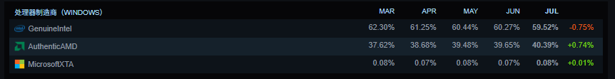 本站 8 月 2 日消息,V 社最新的 2025 年 7 月的 Steam 软硬件调查结果显示,64 位 Windows 11 最受欢迎,目前总体份额已接近 60%。