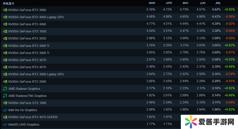 本站注意到,英伟达 RTX 3060 再次反超 RTX 4060(实际上月月反转),玩家仍惯用 16GB RAM、1920x1080 分辨率显示器。