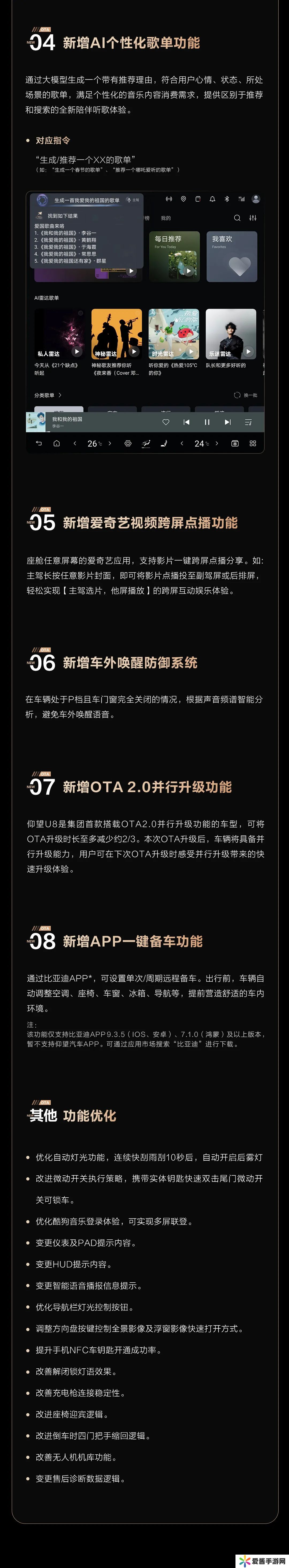 U8 越野玩家版:云辇路面预瞄、手车互联、智能语音 10 语种方言、AI 个性化歌单、爱奇艺视频跨屏点播、车外唤醒防御、OTA 2.0 并行升级、App 一键备车