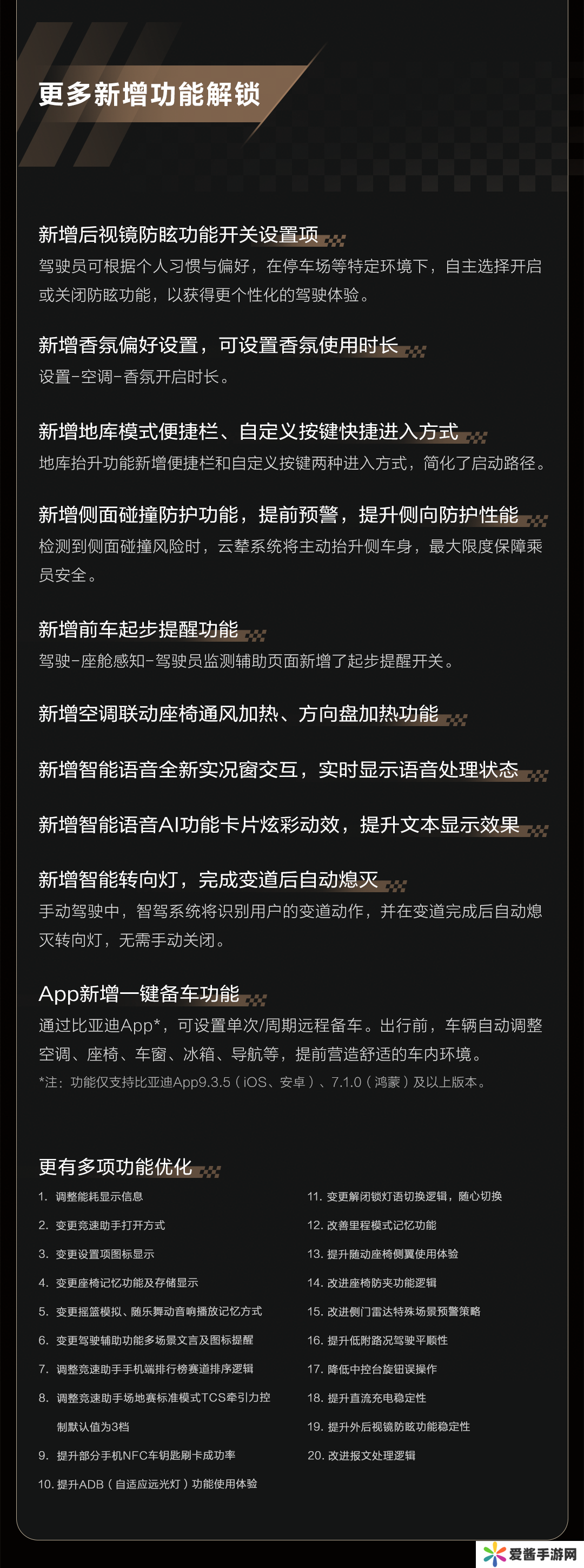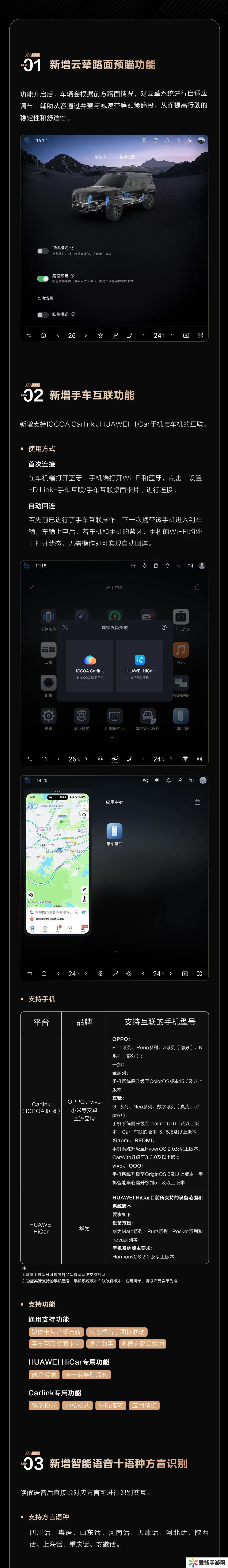 仰望 U9:哨兵模式、易四方平行横移、易四方定轮旋转、竞速助手新增天津 V1 短赛道、10 种方言识别、应用行为记录等