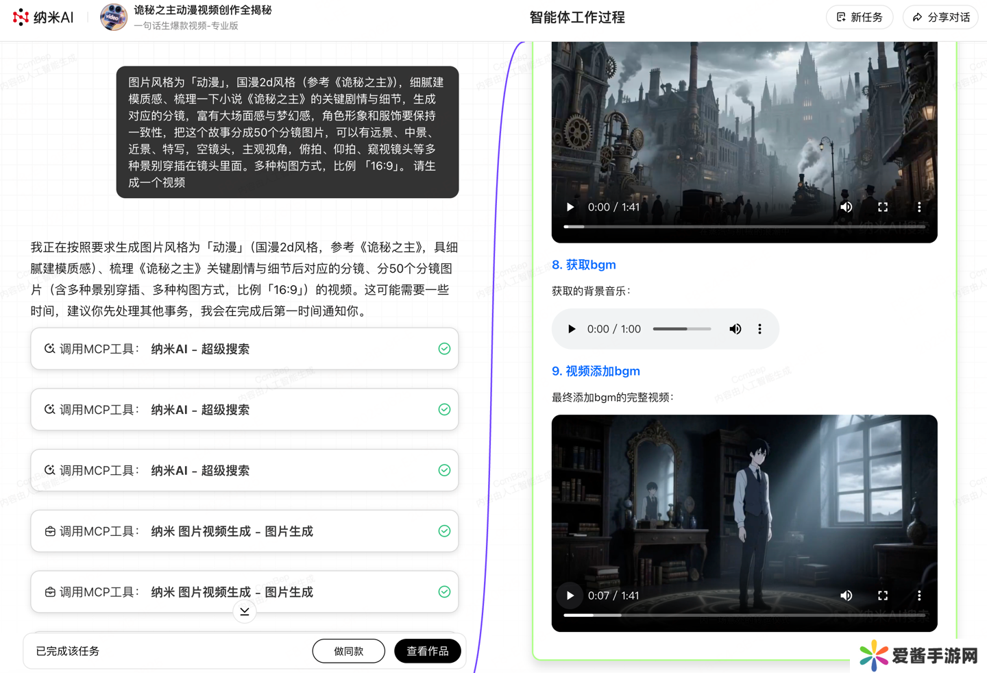 截至目前,纳米 AI 中已有超过 5 万个 L3 级推理智能体。在“蜂群”框架下,这些智能体可以组合成 L4 团队,在一套指挥系统下,目标一致、步调一致执行任务,每个角色在团队中的作用都能发挥到极致,最终完成超长的复杂任务,比如制作一个长达 10 分钟的电影级大片。