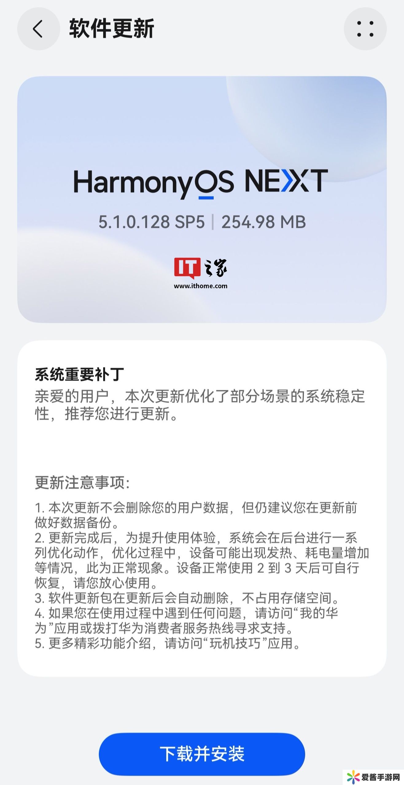 本站 8 月 4 日消息,升级至鸿蒙 HarmonyOS 5.1 版本的华为手机(含 Mate 60、Mate 70 系列等)目前正推送系统补丁包,大小约 254.98MB。更新日志显示,优化部分场景的系统稳定性。
