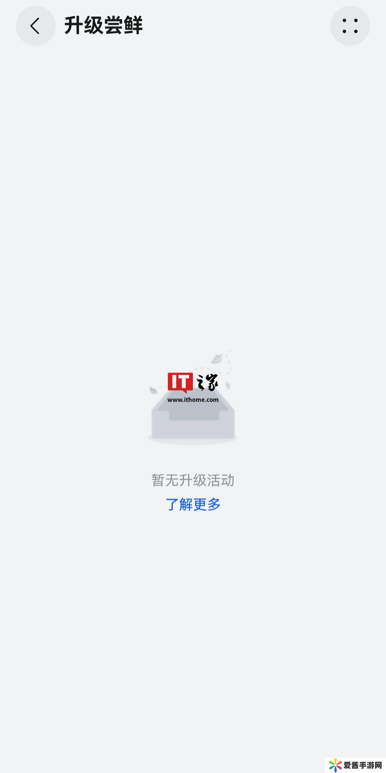 本站实测发现,更新该补丁包后的机型会在系统更新右上角的「: :」新增“升级尝鲜”选项(目前该选项的功能页面暂无相关活动)。