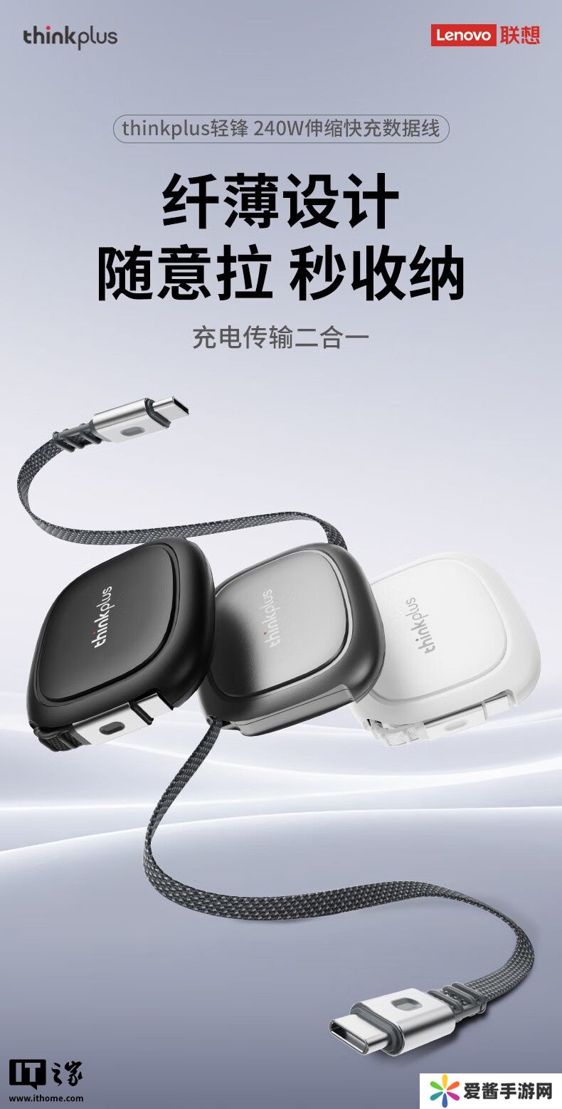 本站 8 月 25 日消息,联想 thinkplus 轻锋 240W USB-C 伸缩充电线现已在京东开售。可选黑 / 白 /银灰三色,标准价 59 元,首发到手价低至 53 元。