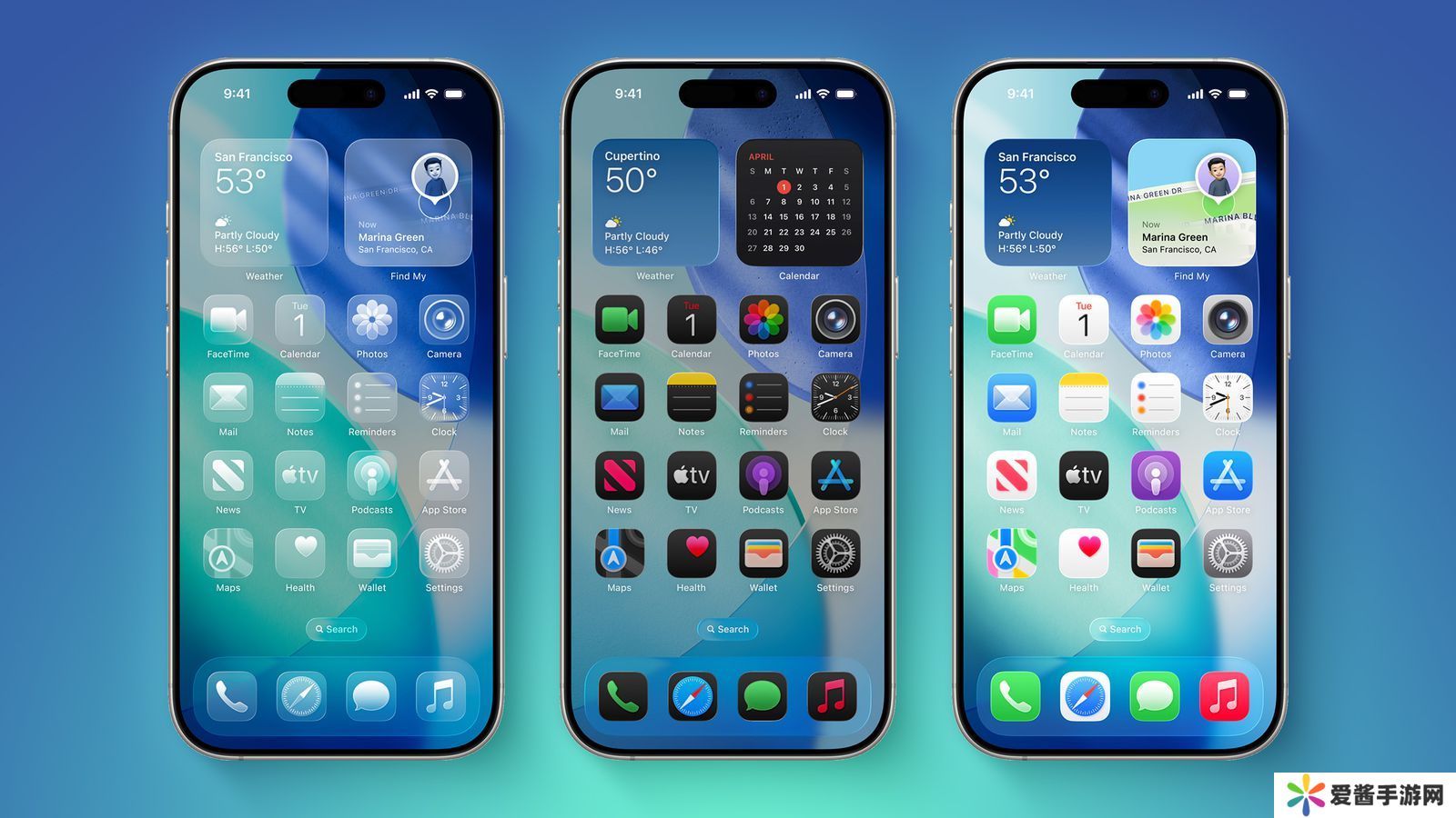 iOS 26 和 iPadOS 26 采用全新的 Liquid Glass(液态玻璃)设计,整体界面强调透明与光影变化,图标、菜单、导航栏均具备反射与折射效果,并辅以细腻动画,部分区域新增弹出菜单,标签栏可自动收缩,界面元素更为圆润。
