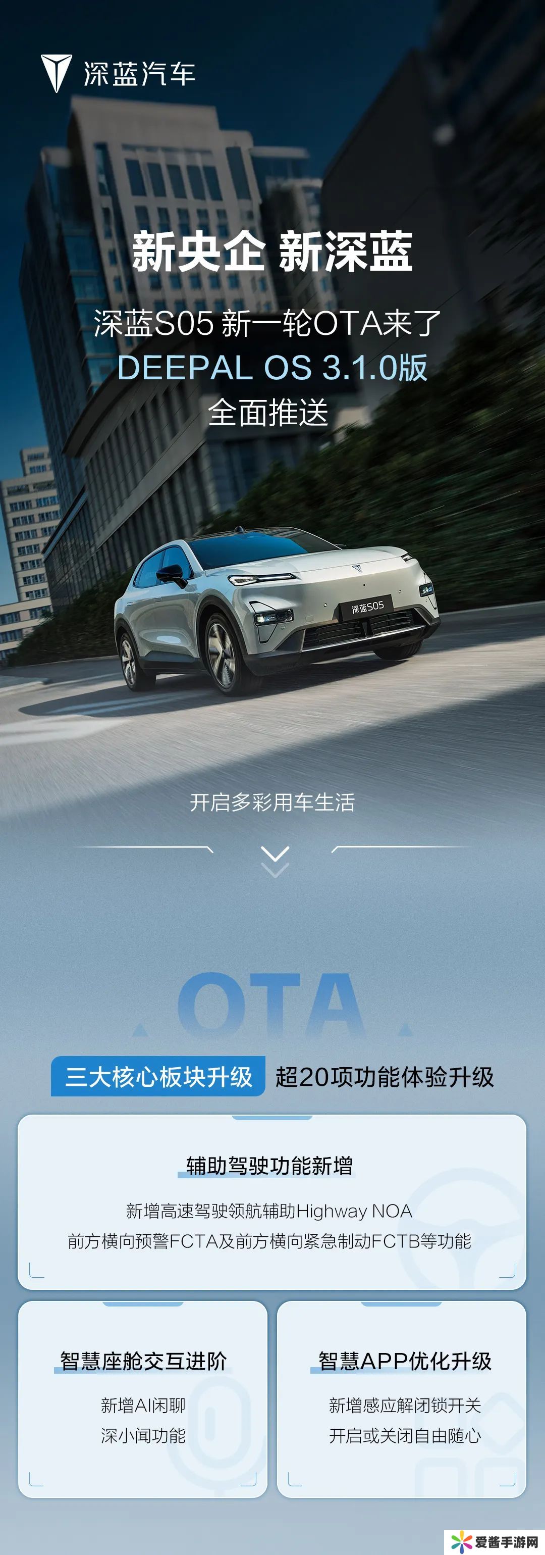 本站 8 月 26 日消息,深蓝汽车今天宣布推送新一轮 OTA 更新,深蓝 S05 更新 DEEPAL OS 3.1.0 版本。