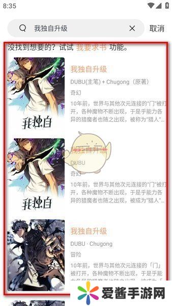 3、然后软件就会展示多个搜索结果,因为内置好几个漫画源,所以结果不止一个;