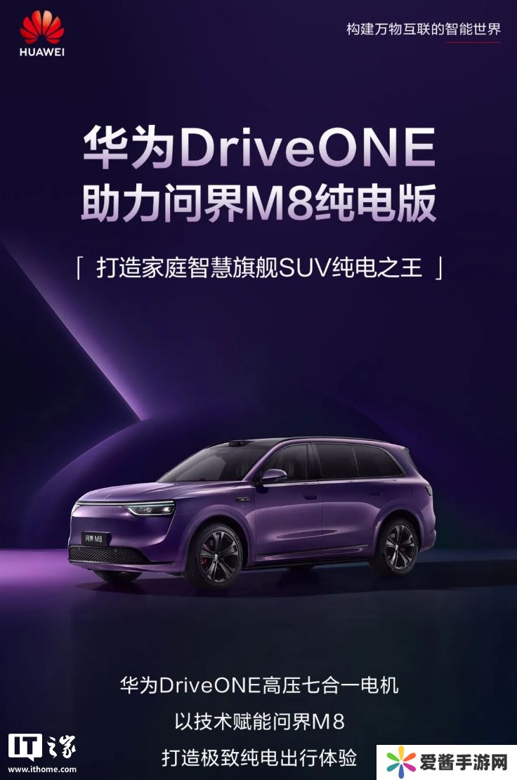 本站 8 月 26 日消息,鸿蒙智行问界 M8 纯电版汽车已于昨日上市,该车搭载华为 DriveONE 高压七合一电机,售价 35.98 万-44.98 万元。华为数字能源官方今日发文公布了该电机亮点,并表示助力问界 M8 纯电版“打造家庭智慧旗舰 SUV 纯电之王”。