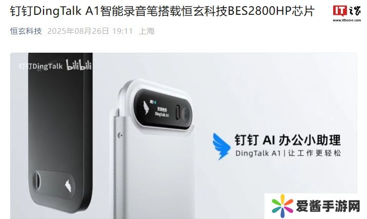 据恒玄科技今日消息,钉钉 DingTalk A1 智能录音笔搭载恒玄科技 6nm 制程工艺的 BES2800HP 芯片。