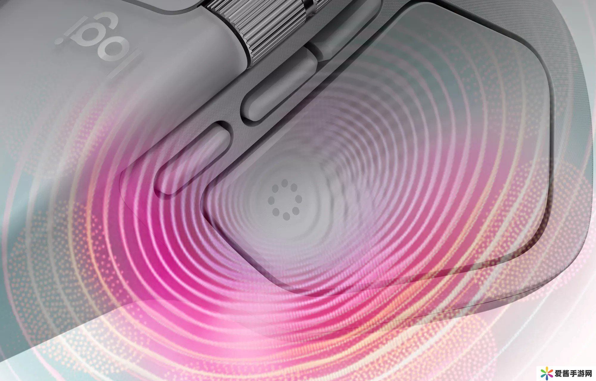 最大亮点是新增的“Haptic Sense”触觉反馈板,位于拇指区域,内置振动马达可针对特定操作、快捷键或系统通知进行反馈。用户可通过 Logi Options + 应用调节震动强度,实现个性化交互体验。