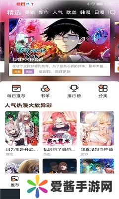 首页为大家精选人气和优质漫画,热门神作看不完,每天都有佳作推荐;