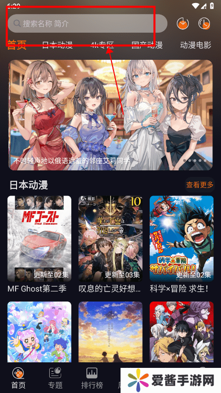 囧次元动漫无广告版攻略进入囧次元app之后,在首页点击头部的搜索框;