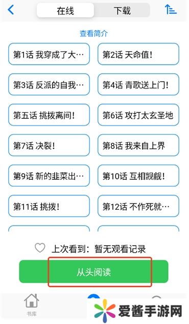 2、找到感兴趣的作品后点击进入,点击“从头阅读”或是点击其中一个章节开始阅读