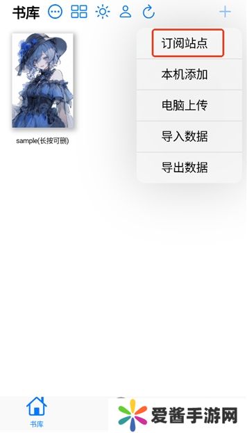4、除了软件自带的书源外,还可以点击【书库】右上角的+号自行导入书源