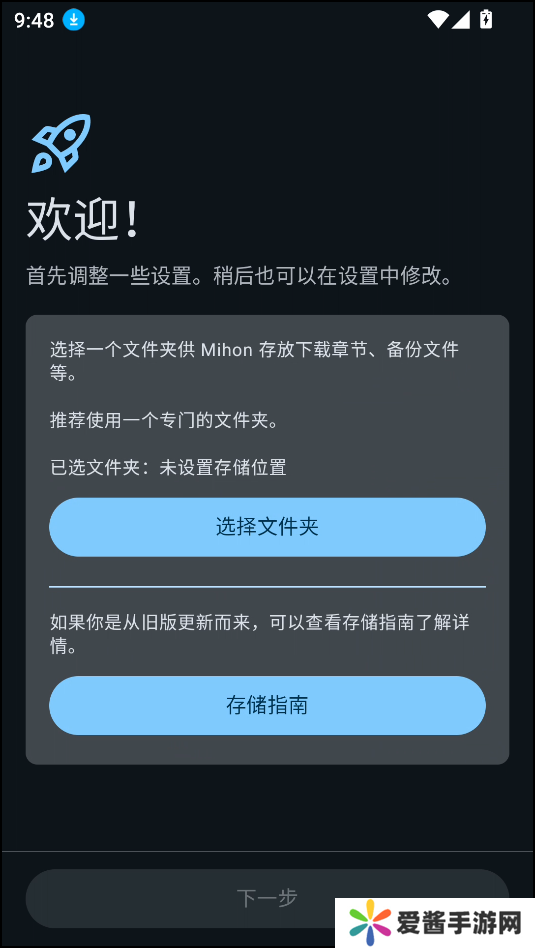 2、你需要选择一个文件夹供Mihon存放下载章节、备份文件等推荐新建一个空的文件夹。