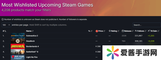 Steam的“最受期待榜”根据玩家点击游戏商店页面上的心愿单按钮次数排序,目前榜单收录了超过3000款即将发售的游戏。
