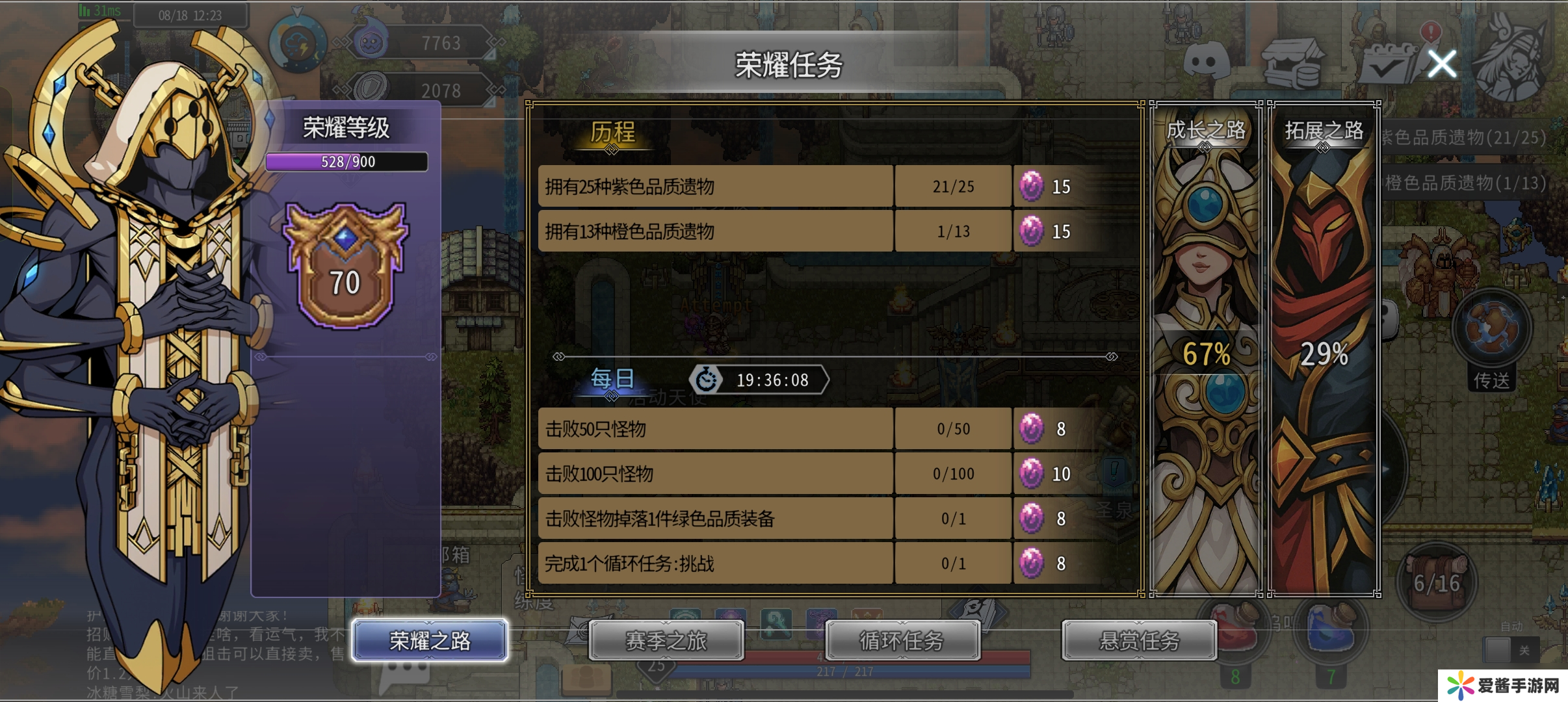 3.任务板:荣耀等级任务,每日任务,挑战任务,赛季任务,成长之路,拓展之路。