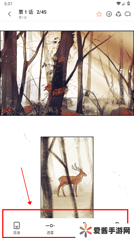 在阅读页,提供目录、进度、夜间、设置等功能;