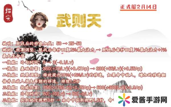 有人说是加强,但我不这么认为,想要维持目前正式服的伤害需要出更多的法强装,这有悖于武则天的玩法,除非什么时候取消1技能的后摇才行。