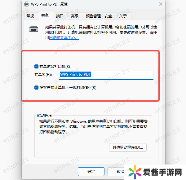进入 控制面板 → 设备和打印机,右键点击目标打印机 → 打印机属性 → 共享选项卡。