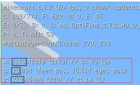 三、传送指令使用方法1、在游戏界面中要传送的地方按下F3,在游戏的左上角查看传送所在地方的X、Y、Z坐标。