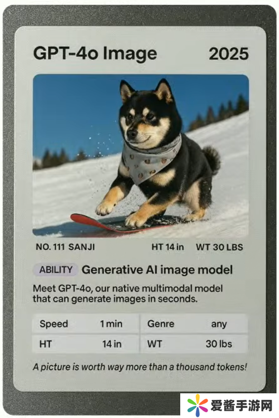 然后,他们给了模型一张卡片,希望生成同样风格的图像,但要求主角不再是卡片中的巨猫国王,而是某位研究者的狗狗。