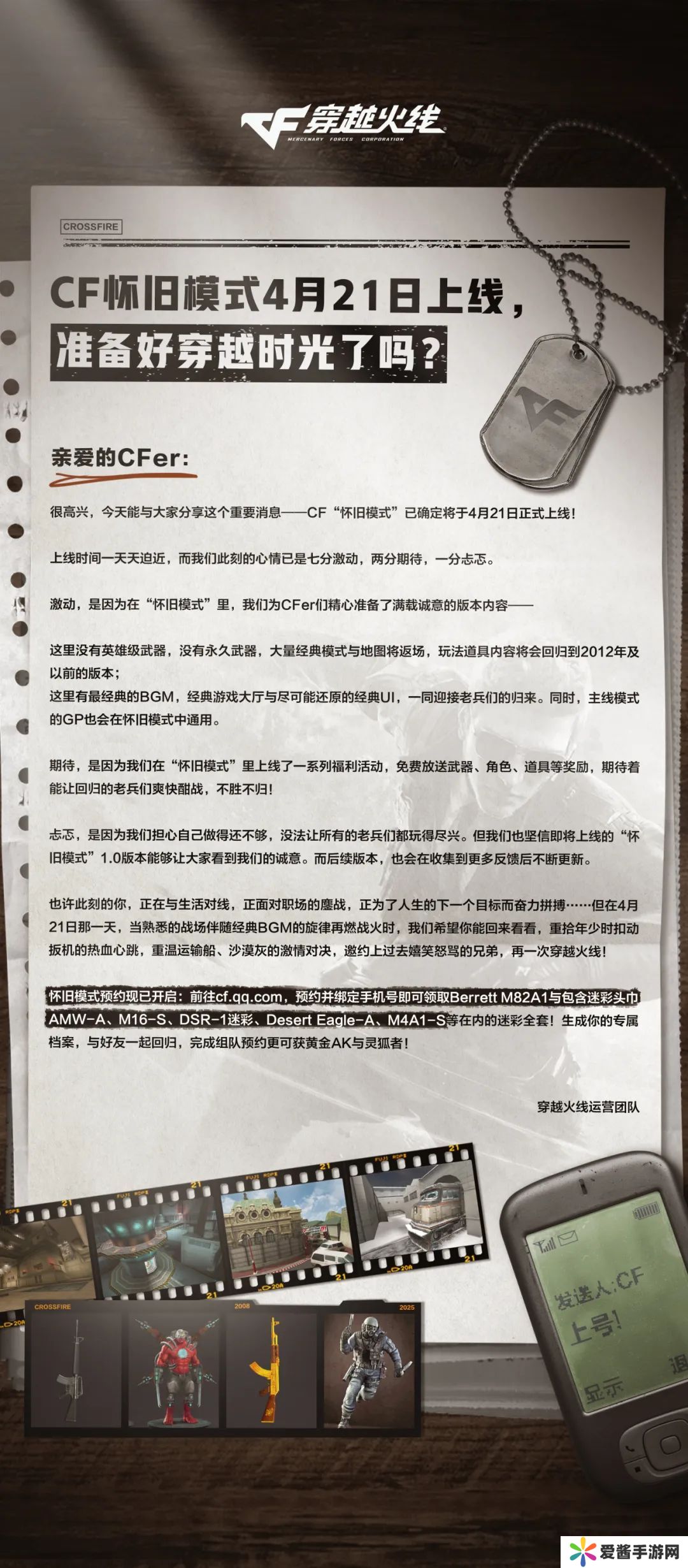 本站 3 月 26 日消息,腾讯代理 FPS 游戏《穿越火线》国服官宣,《穿越火线》怀旧模式定档 4 月 21 日。