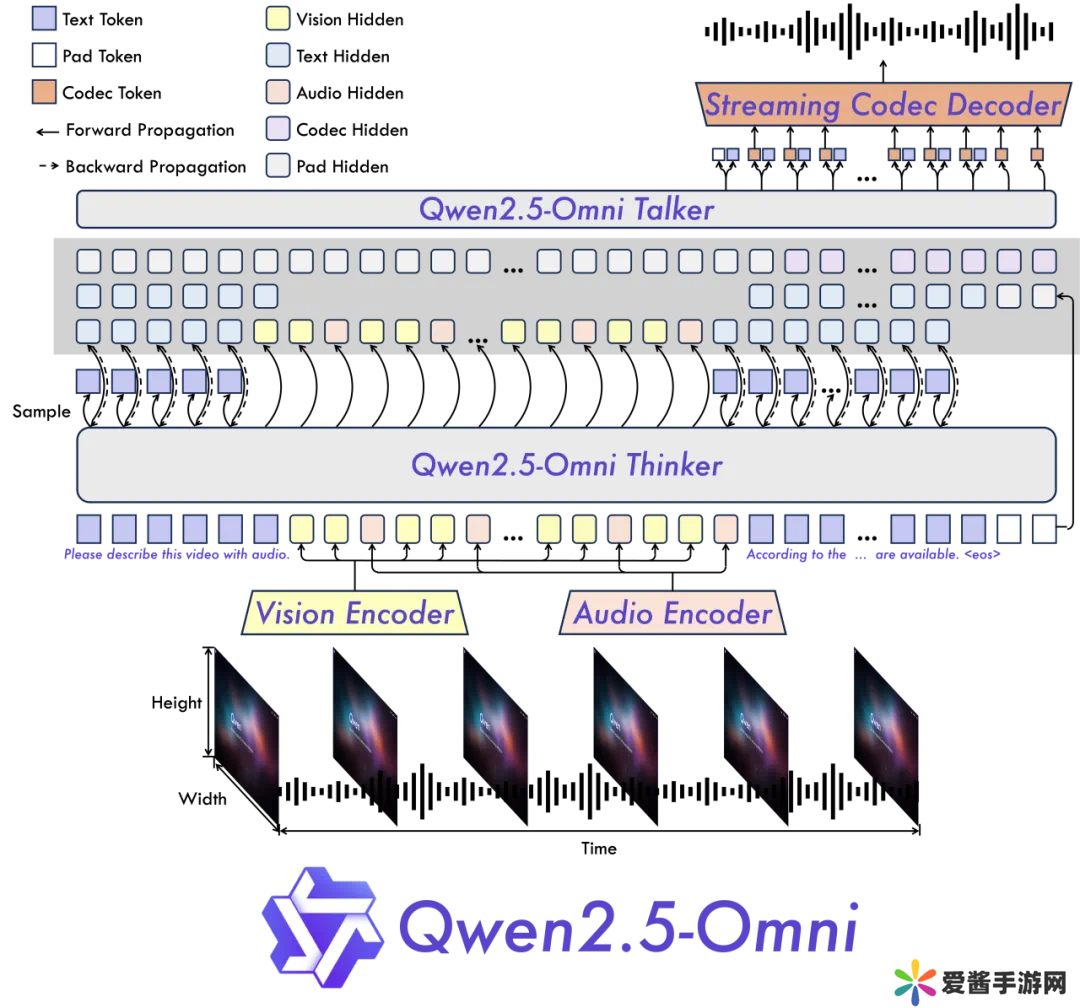 全能创新架构:Qwen 团队提出了一种全新的 Thinker-Talker 架构,这是一种端到端的多模态模型,旨在支持文本 / 图像 / 音频 / 视频的跨模态理解,同时以流式方式生成文本和自然语音响应。Qwen 提出了一种新的位置编码技术,称为 TMRoPE(Time-aligned Multimodal RoPE),通过时间轴对齐实现视频与音频输入的精准同步。