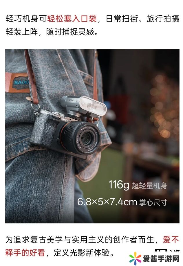 根据唯卓仕官方描述,该闪光灯可用于日常街拍、人像创作和社交分享等场景;外观采经典荔枝纹皮革辅以亚光银金属质感外壳,操作拨杆用复古机械设计,机身采用轻巧设计,可塞入口袋;热靴触点为单触点通讯,可适配各种 CCD、微单或胶片机等各类单触点热靴相机。