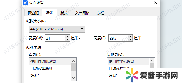 2、在打印设置界面,找到“纸张大小”选项,确保选择的是与实际使用的纸张一致的选项(例如A4、A3等)。