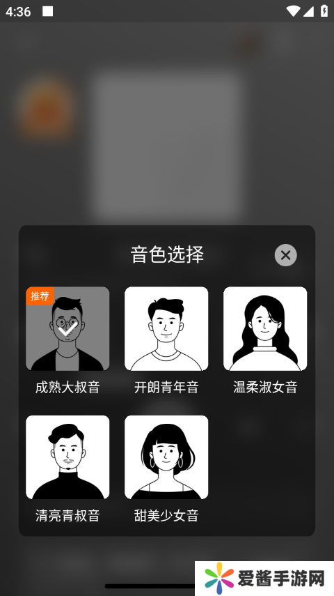 3、第三步,这里有不同的音色选择,任选一个自己喜欢的声音,这里我选择温柔淑女音。