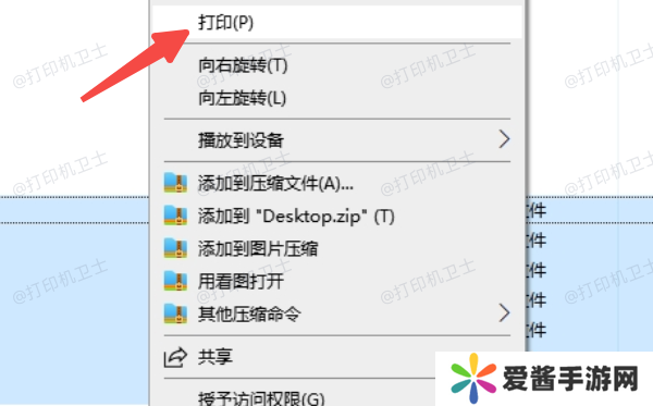 4、选中文件后,右键点击其中一个文件,选择“打印”选项。
