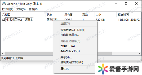 在列表中找到当前使用的打印机,右键点击它,选择“查看现在正在打印什么”。