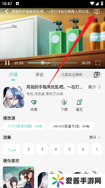 3、选择一个自己感兴趣的动漫作品进入其详情页,如图所示,这里可以切换播放源,可以切换选集,可以收藏,下载,以及催更。