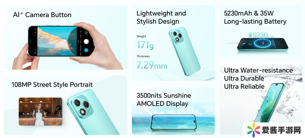 此外,该机后置 108MP 主摄像头(f/1.75)+5MP 广角和景深摄像头(f/2.2),前置 16MP 摄像头(f/2.45),机身侧面配备一颗 AI 相机按钮。机身内置 5230 mAh 电池(典型值),支持 35W 有线快充。