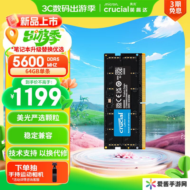 京东 Crucial 英睿达 64GB DDR5 5600 频率 笔记本内存条 美光(原镁光)原厂颗粒 AI 电脑配件 1199 元直达链接现在,这款单条 64GB 容量的 DDR5 5600 内存已经上架京东并开售,但仅提供了笔记本电脑使用的 SO-DIMM 型号(CT64G56C46S5),每条 1199 元。