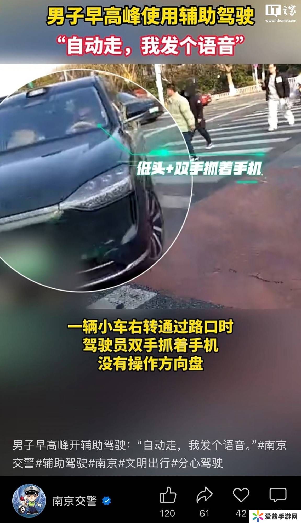 在南京的一次交通执法中,一名驾驶员因不当使用辅助驾驶功能而受到了交警的现场教育。据目击者描述,这名驾驶员在通过路口时,双手竟然离开了方向盘,全神贯注地操作着手机。他自以为车辆处于辅助驾驶模式下能够自主行驶,因此放心地处理起了个人事务。
