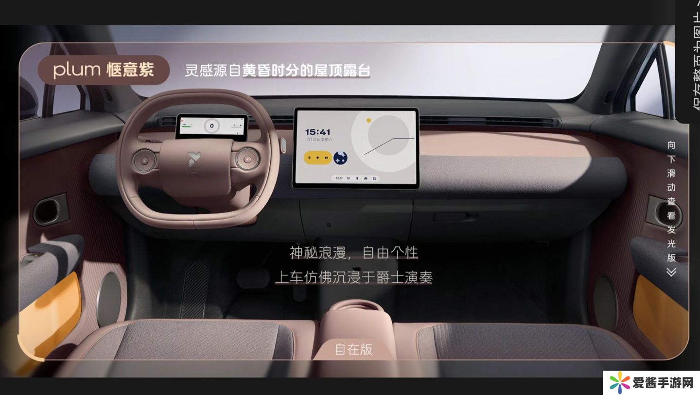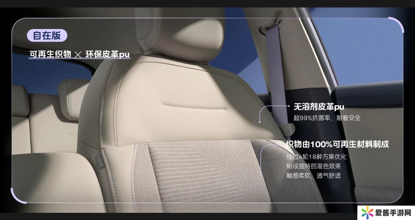 据官方介绍,自在版内饰采用可再生织物搭配环保皮革 pu 材质,斜条纹设计语言;发光版采用 microfiber 超纤绒搭配环保皮革 pu 材质,座椅采用图案打孔设计。