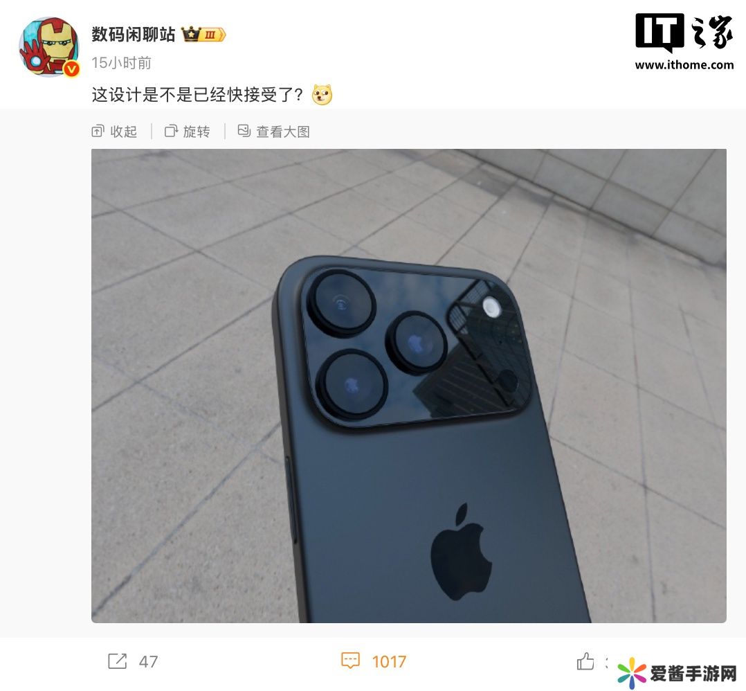 本站 4 月 7 日消息,博主@数码闲聊站 发布一张机模渲染图,展示了苹果即将推出的iPhone 17 Pro系列手机设计,直观展示了该机“横向大矩阵”摄像头模组,考虑到该博主发布内容有较高准确度,该图预计可以反映最终的手机设计。