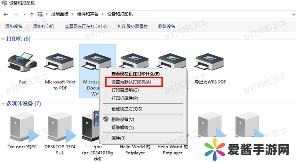 2. 右键点击你要使用的打印机,选择“设置为默认打印机”。