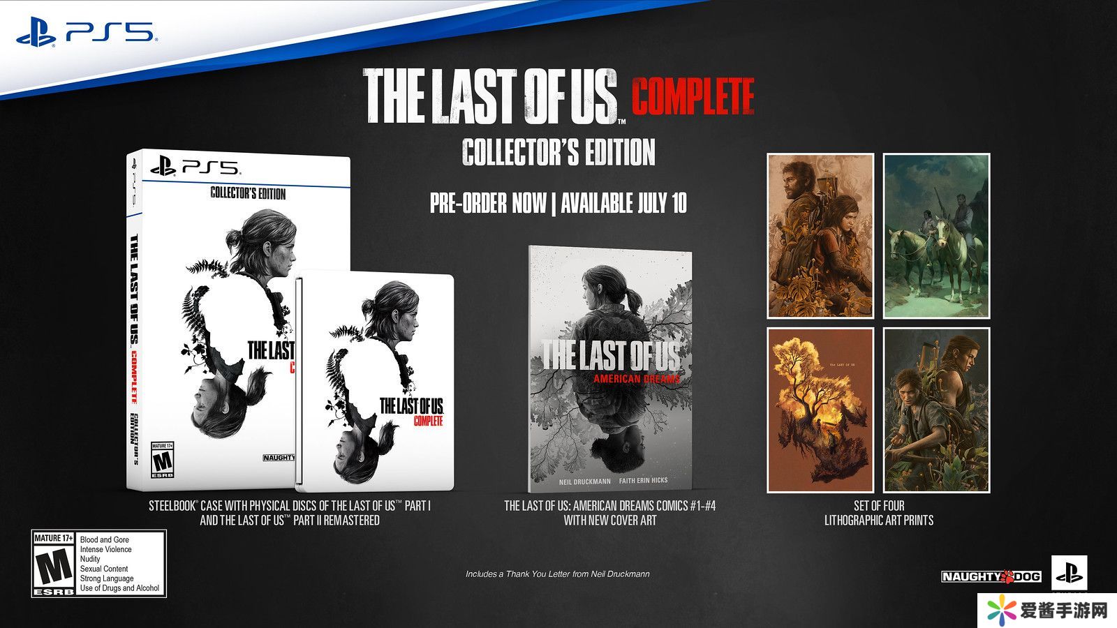 除了数字版,顽皮狗还打造了实体《The Last of Us Complete: Collector’s Edition》。该版本即日起在 direct.playstation.com 独家预订,限量发售,预计 7 月 10 日发货,售价为 110 美元(现汇率约合 809 元人民币)。