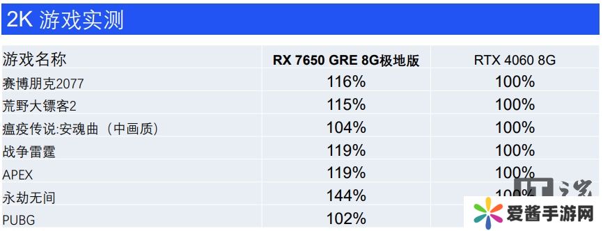 蓝宝石 RX 7650 GRE 8G D6 极地版显卡官方游戏实测如下: