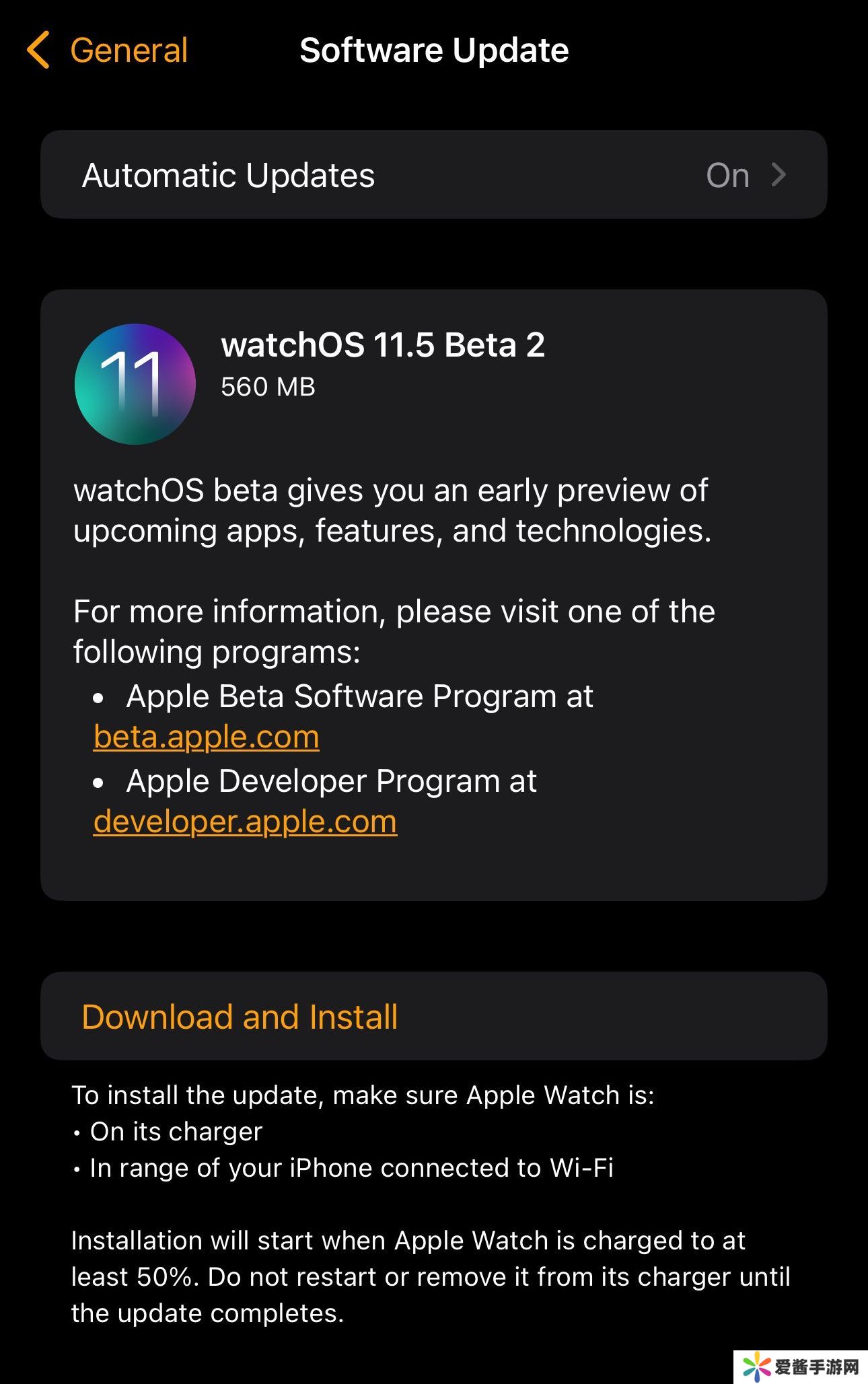 要安装 watchOS 11.5 测试版,需先将配对的 iPhone 更新至 iOS 18.5 测试版。随后在 iPhone 的 Watch 应用中,进入“通用 > 软件更新”,启用“watchOS 11 开发者测试版”选项即可下载。另外需要注意的是,watchOS 不支持降级,删除测试版配置文件将停止接收后续测试更新。